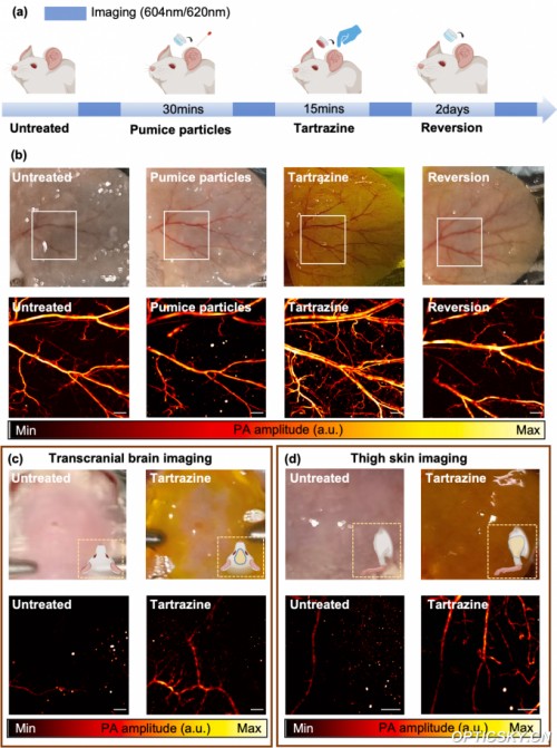 图3. MW-OR-PAM活体组织可逆透明化无标记成像结果