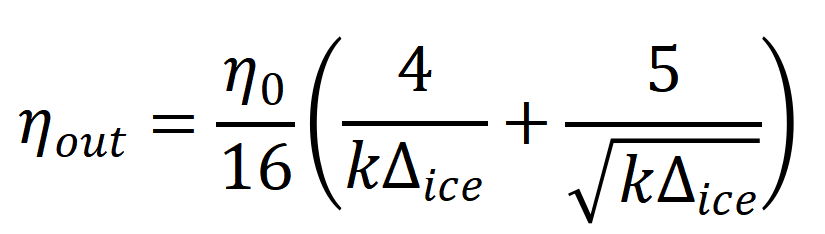 由于处于靶球内部,DT冰气界面粗糙度很难被有效匀滑。内爆过程中激发的流体力学不稳定性主要是由激波与粗糙的DT冰内界面相互作用的种子引发的。我们推导了一个简化的线性模型来估算由内部DT冰界面初始粗糙度η0带来的燃料-烧蚀层界面的扰动幅度ηout。