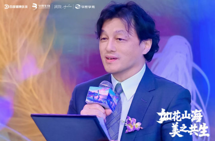 《如花山海》艺术家、洛可可创新设计集团董事长贾伟在致辞中,揭示了艺术与医美的深层共通性——两者皆以探索生命本真为核心,以治愈为内核。他提出美是感知力、认知力、创造力、想象力的融合,而医美医生与艺术家一样,需用“眼”观察人体比例,用“脑”整合美学与科技,用“手”塑造独特之美,本质都是对生命的敬畏与表达。