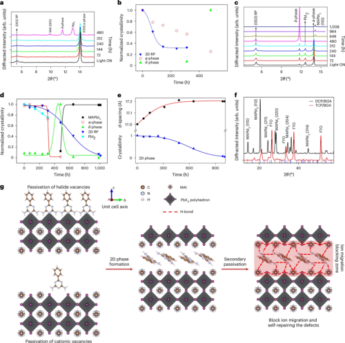 Co-crystal engineering of a two-dimensional perovskite phase for perovskite solar modules with improved efficiency and stability. 效率和稳定性提升钙钛矿太阳能模块的二维钙钛矿相共晶工程。