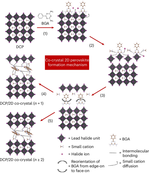 图 6:展示 DCP 层上共晶二维钙钛矿覆盖层相形成机制的示意图。